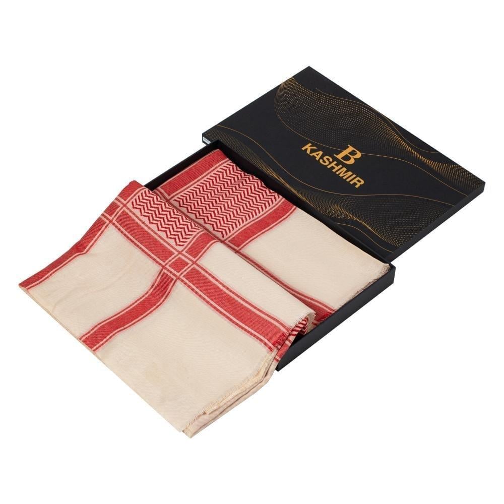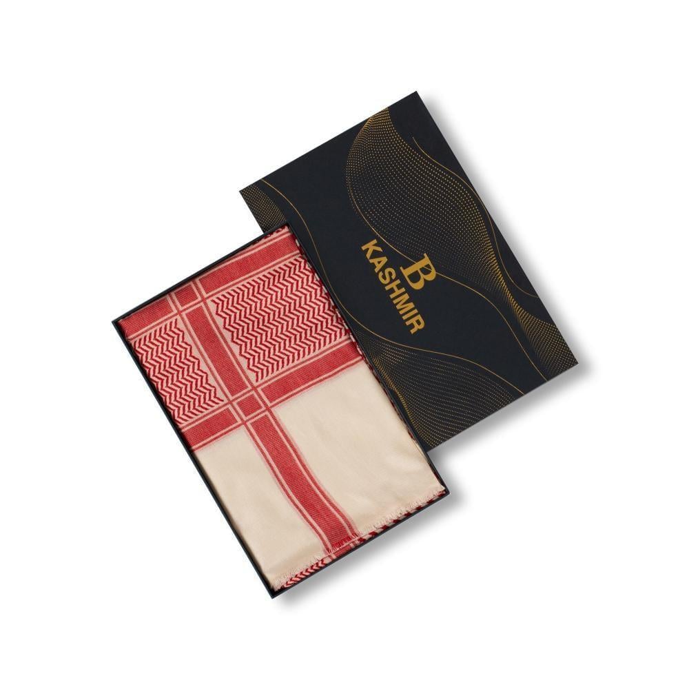 شال باشمينا أحمر على بيج شال الباشمينا الأحمر المصنوع من صوف الكشمير الأصلي هو الخيار الأمثل للتدفئة والأناقة.