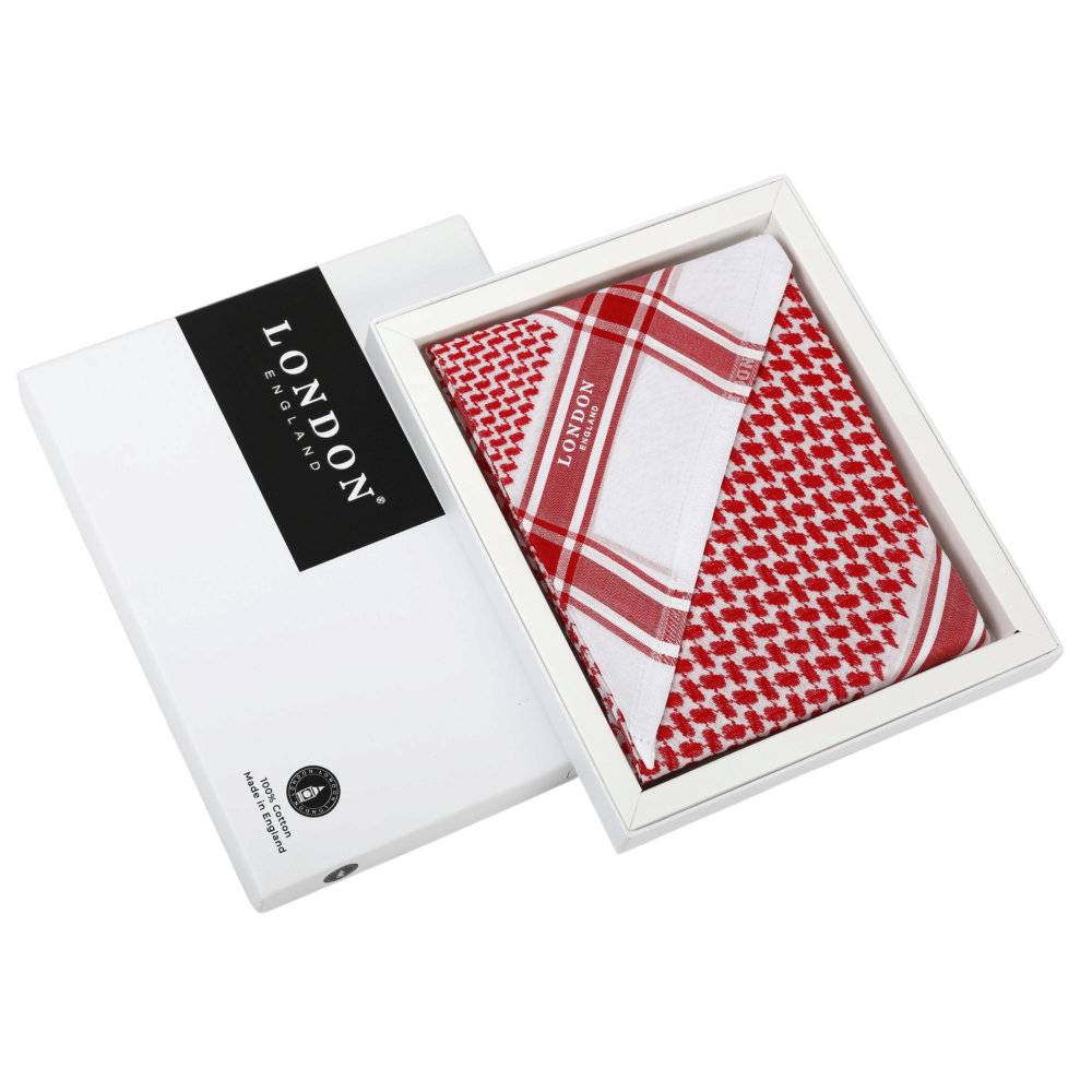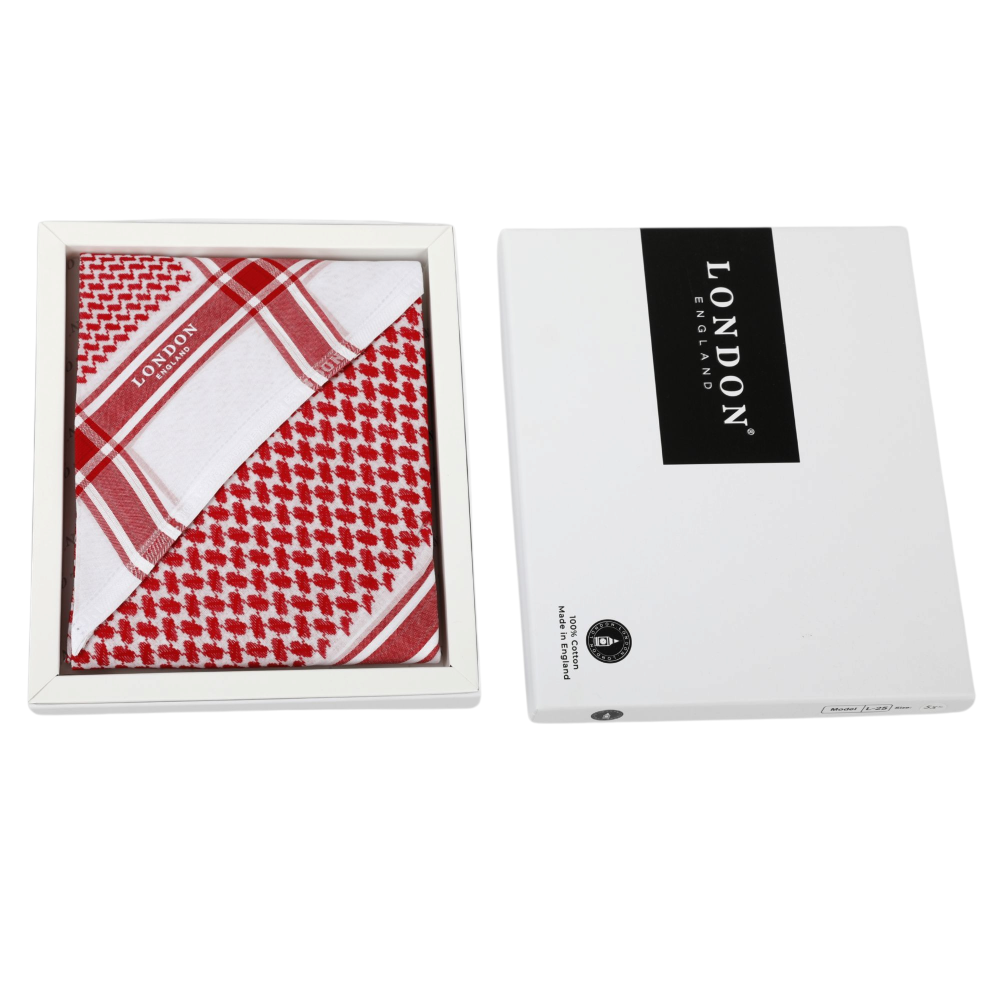 شماغ لندن إنجلترا أحمر شبابي،مصنوع من 100% قطن نقي ليضمن لك الراحة والنعومة. صُنع بعناية فائقة في إنجلترا لتوفير أعلى درجات الجودة والتميز. يتميز بثبات اللون، نسيج مريح، وحياكة متقنة تعكس الفخامة والتقاليد الأصيلة. خيار مثالي لإطلالة أنيقة.