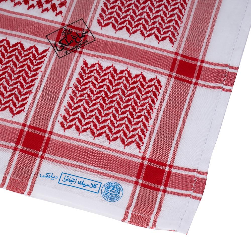 مواصفات الشماغ الملكي سوبر ديلوكس القديم أحمرغامق لعشاق السنق القديم من الأشمغة القطنية ذات الجودة العالية.