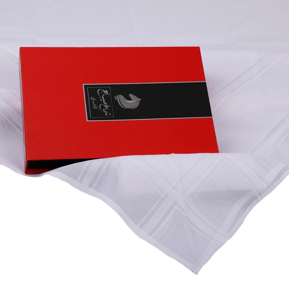 مصنوع من 100% خيوط قطن طبيعي، مما يمنح الشماغ ملمسًا ناعمًا ومريحًا.