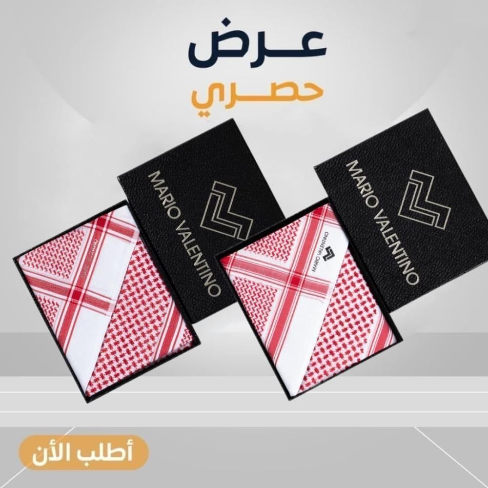 عرض حصري شماغ ماريو فالنتينو احمر + شماغ ماريو فالنتينو الأبيض الإيطالي